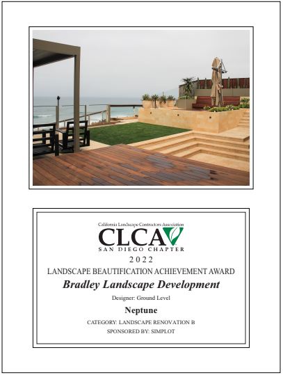 Bradley Landscape Development is proud to share we’re recognized as “The best of the best” by winning the 2023 (and 2022) CLCA Sweepstakes award for best overall landscape project.